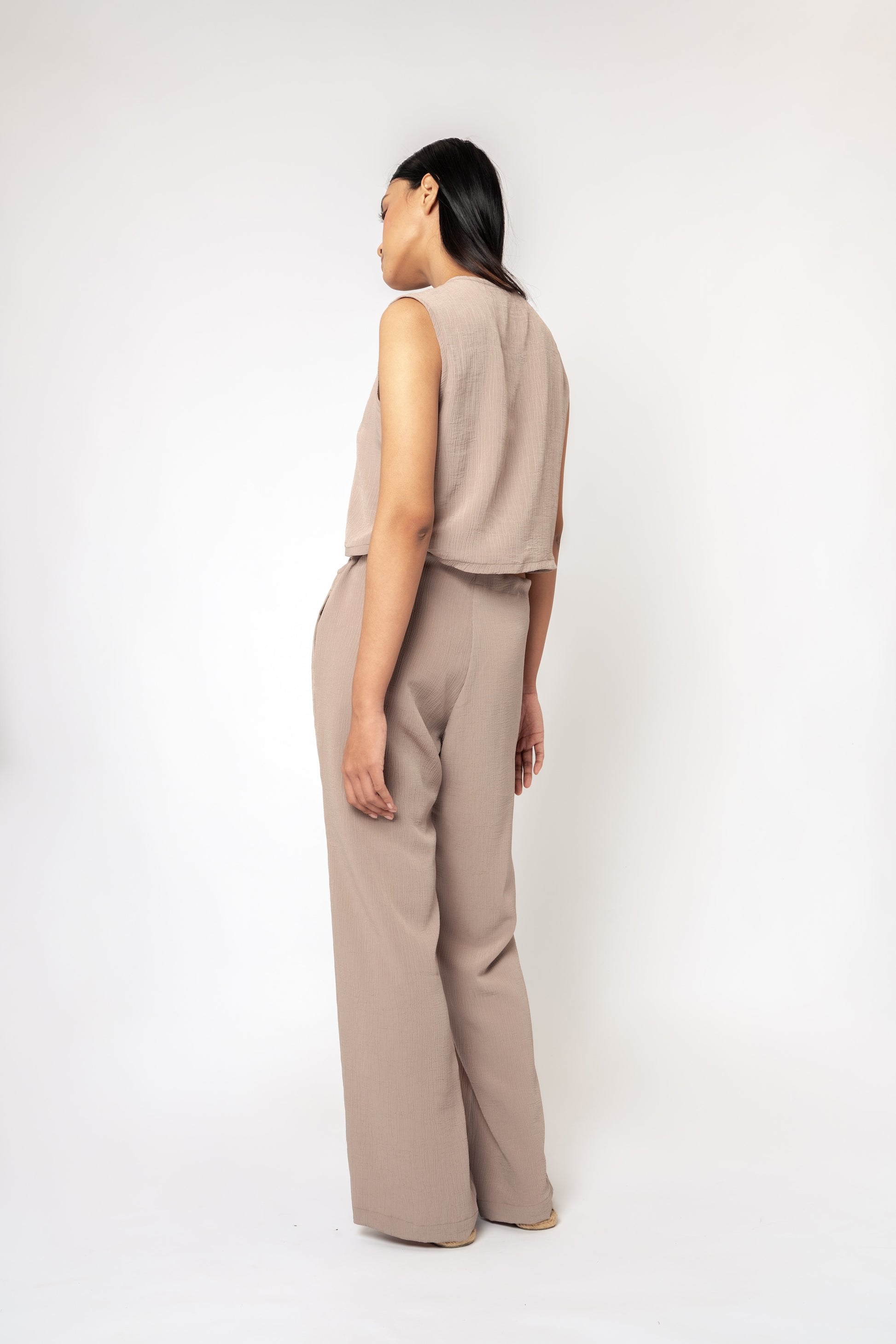 Both flirtatious and demure, this top casts a spell on all who wear it. The crinkled cotton creates an alluring texture. This semi-crop top boasts two tie details as an opener.