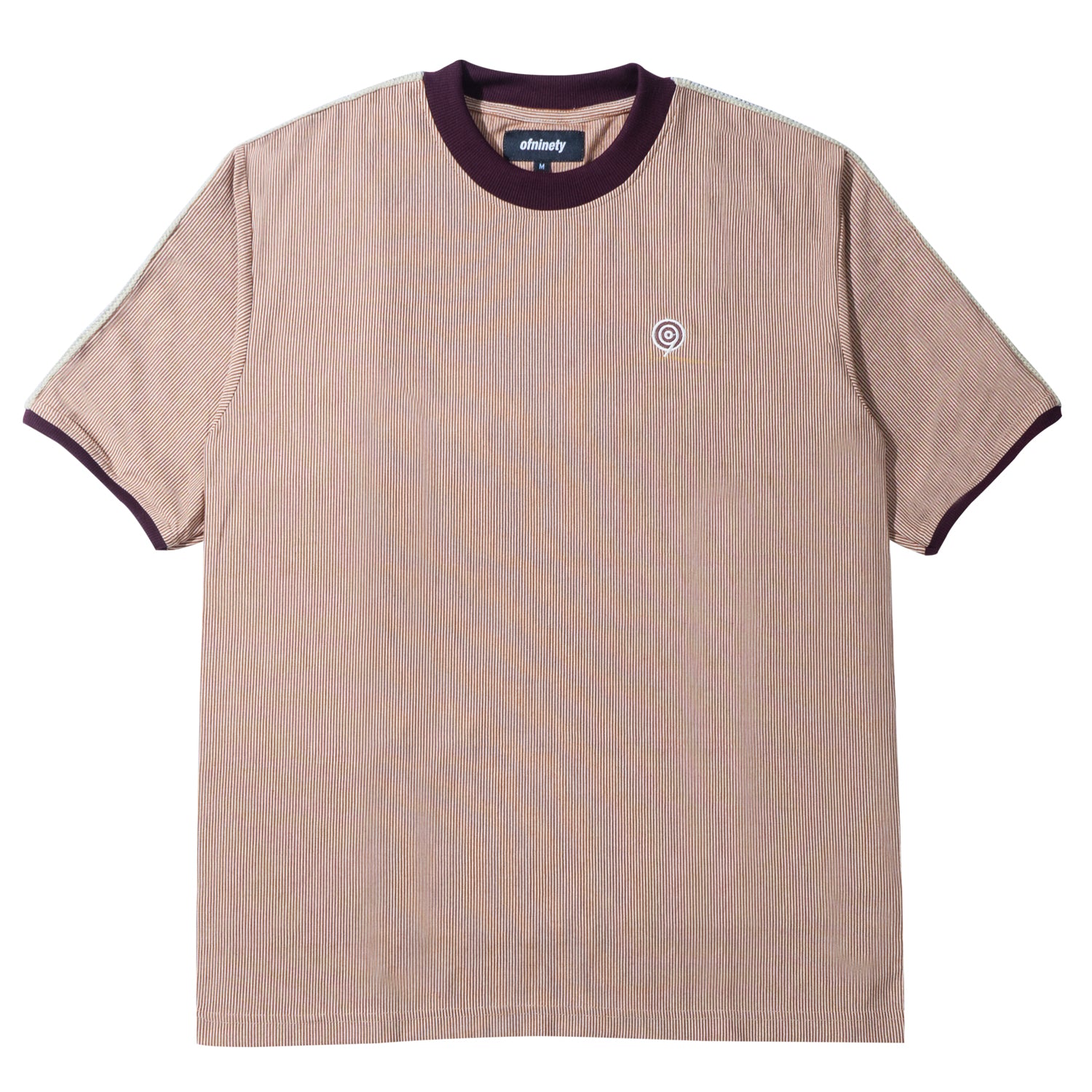Brown Pinstripe Crochet-Trimmed T-shirt