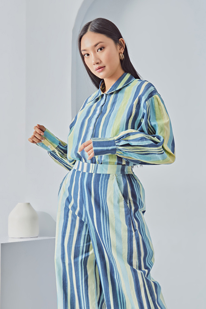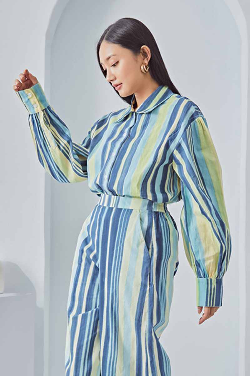 The brand new long-sleeves shirt from our newest collection called RETRONATION. Made out of 100% cotton with cute yet lovable balloon sleeves details in a navy stripes shade.