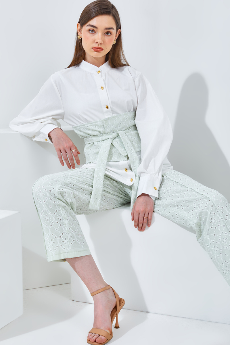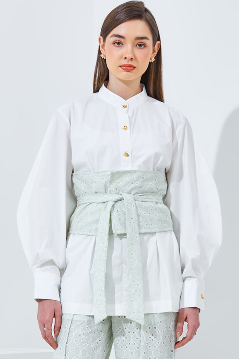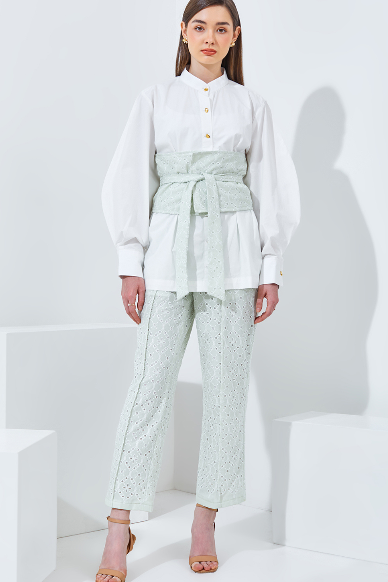 Meet our new Obi Belt features a comfortable stretch at the back in embroidered cotton fabric. The tie closure makes it easy to adjust for a perfect fit. Perfect for pairing with formal or casual outfits.