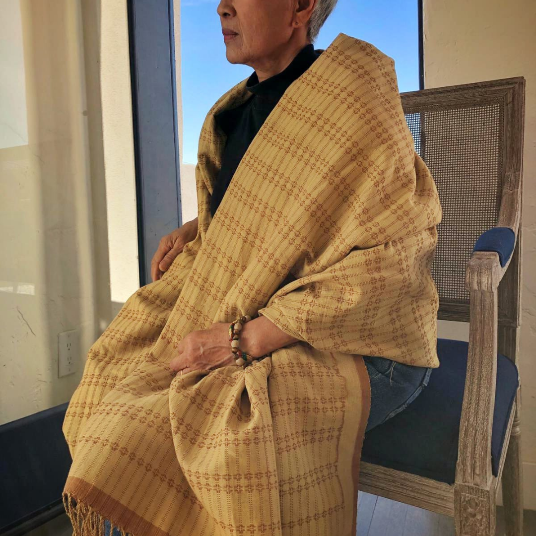 This handwoven oversized scarf/pashmina is Made with sustainable materials and natural coloring