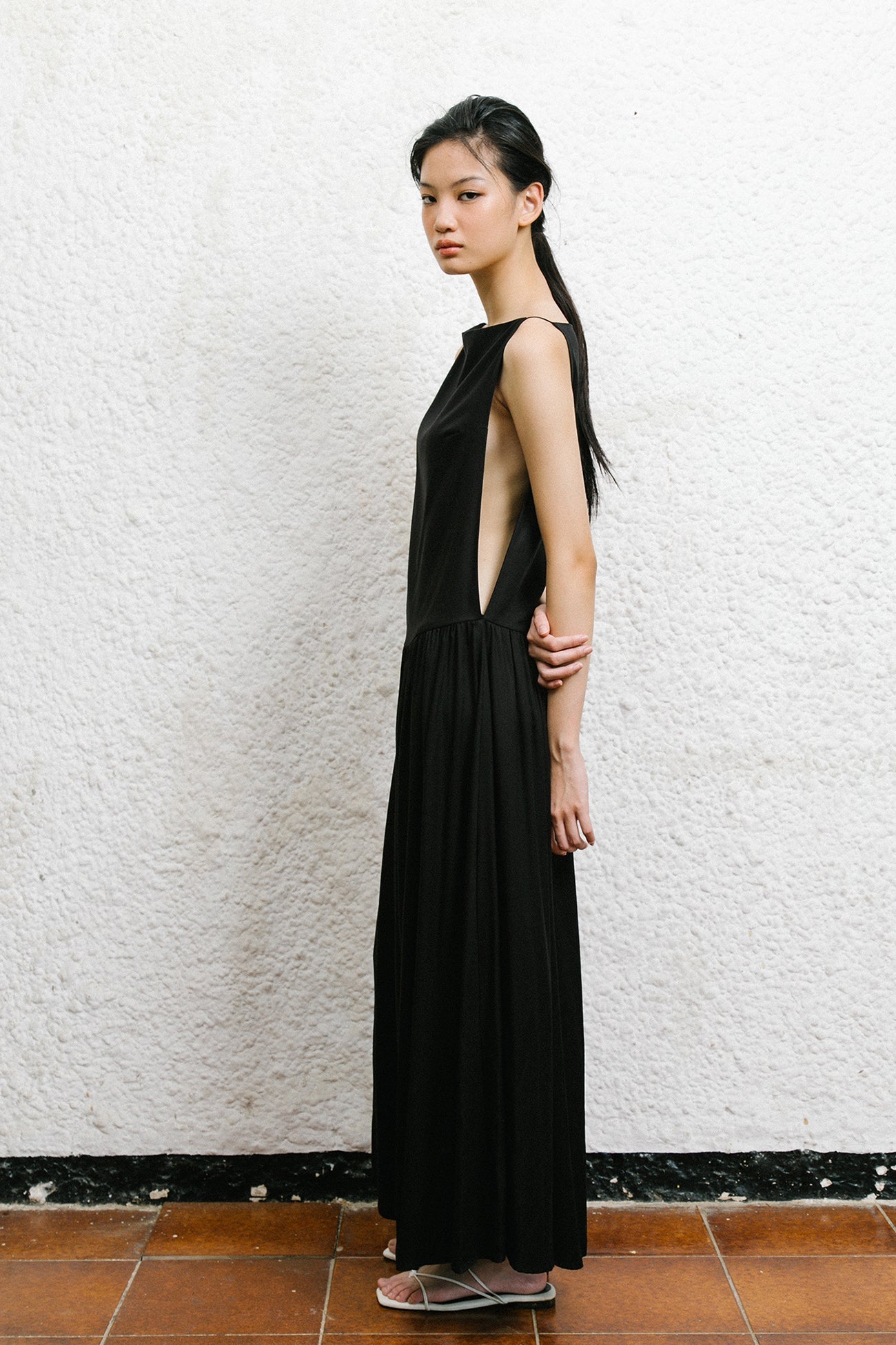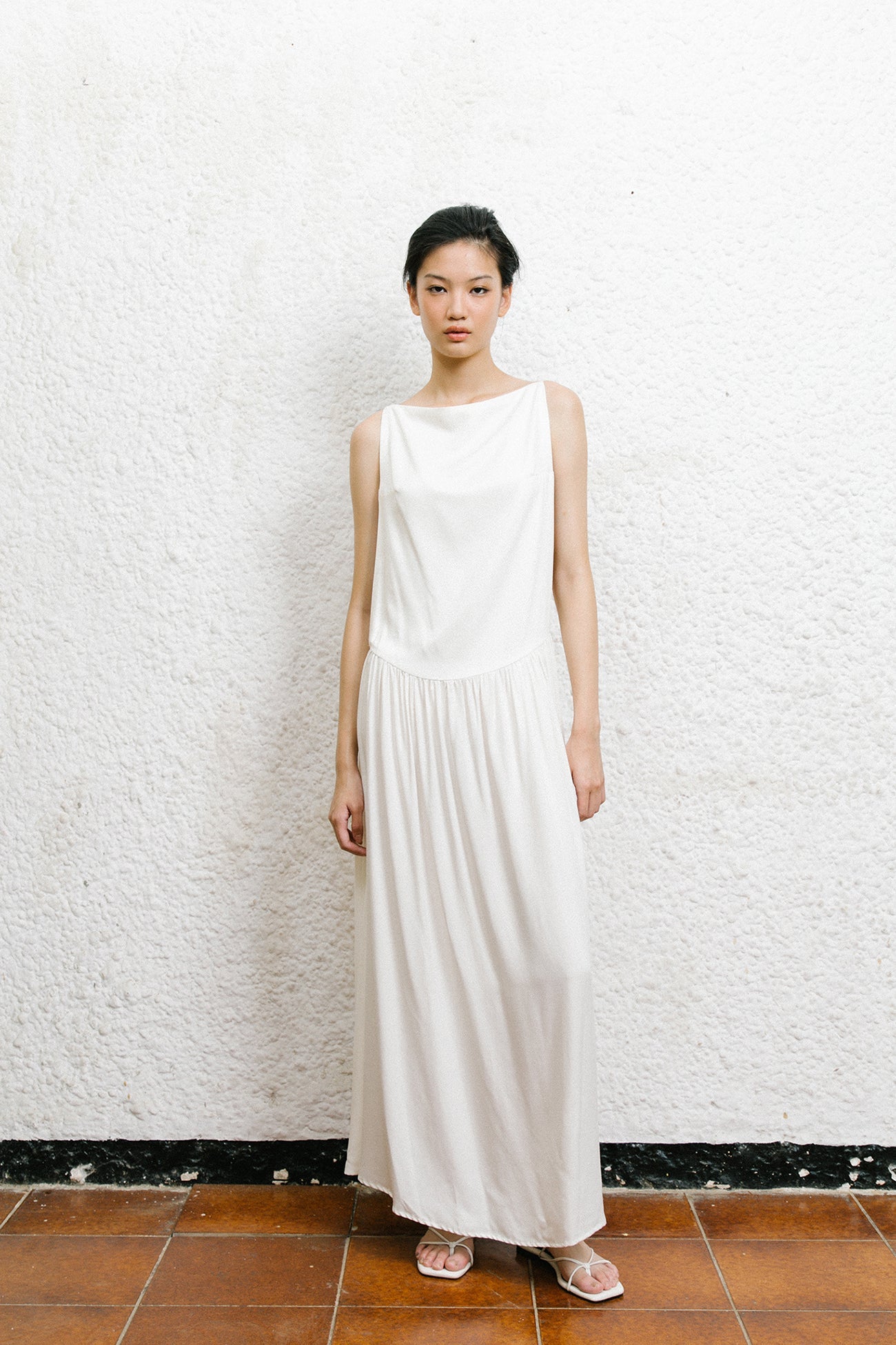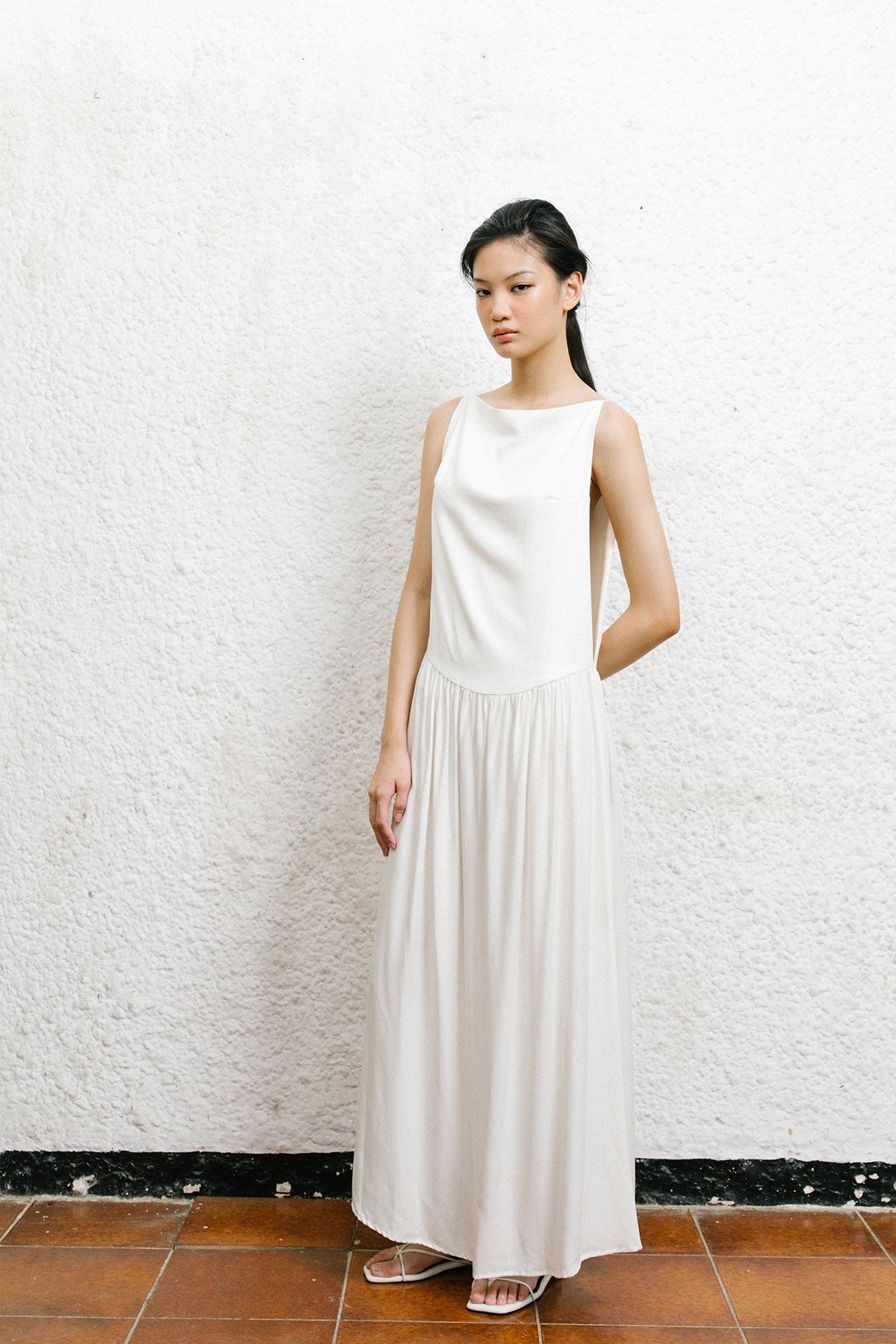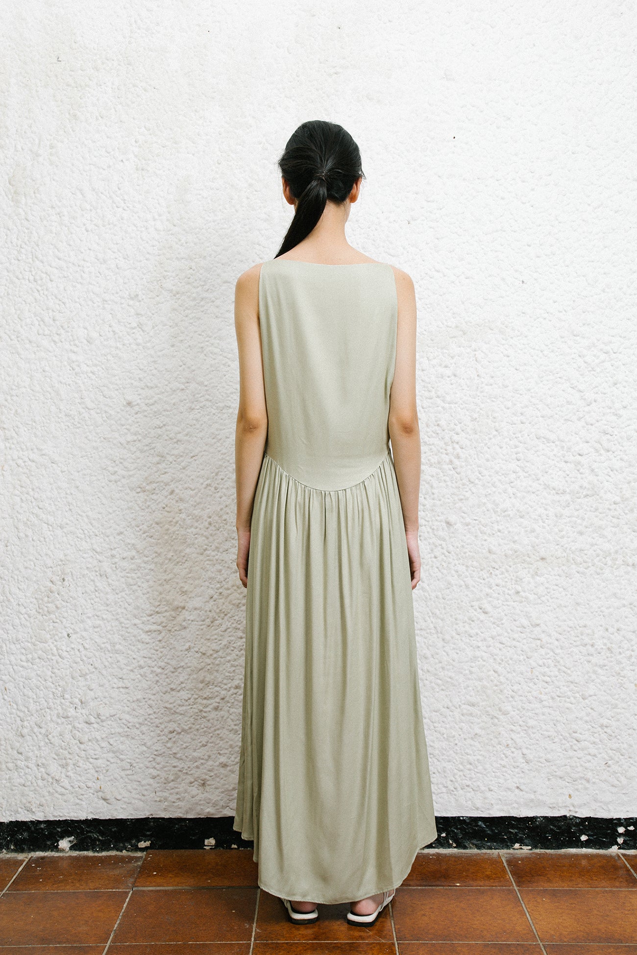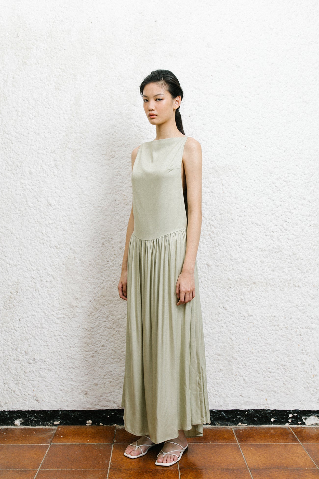 Janna is a boat-necked dress with squared bodice. It has deep v details on both of its side and also a ruffled skirt part of the dress. Janna is available in black, white, and sage green of premium cotton fabric.