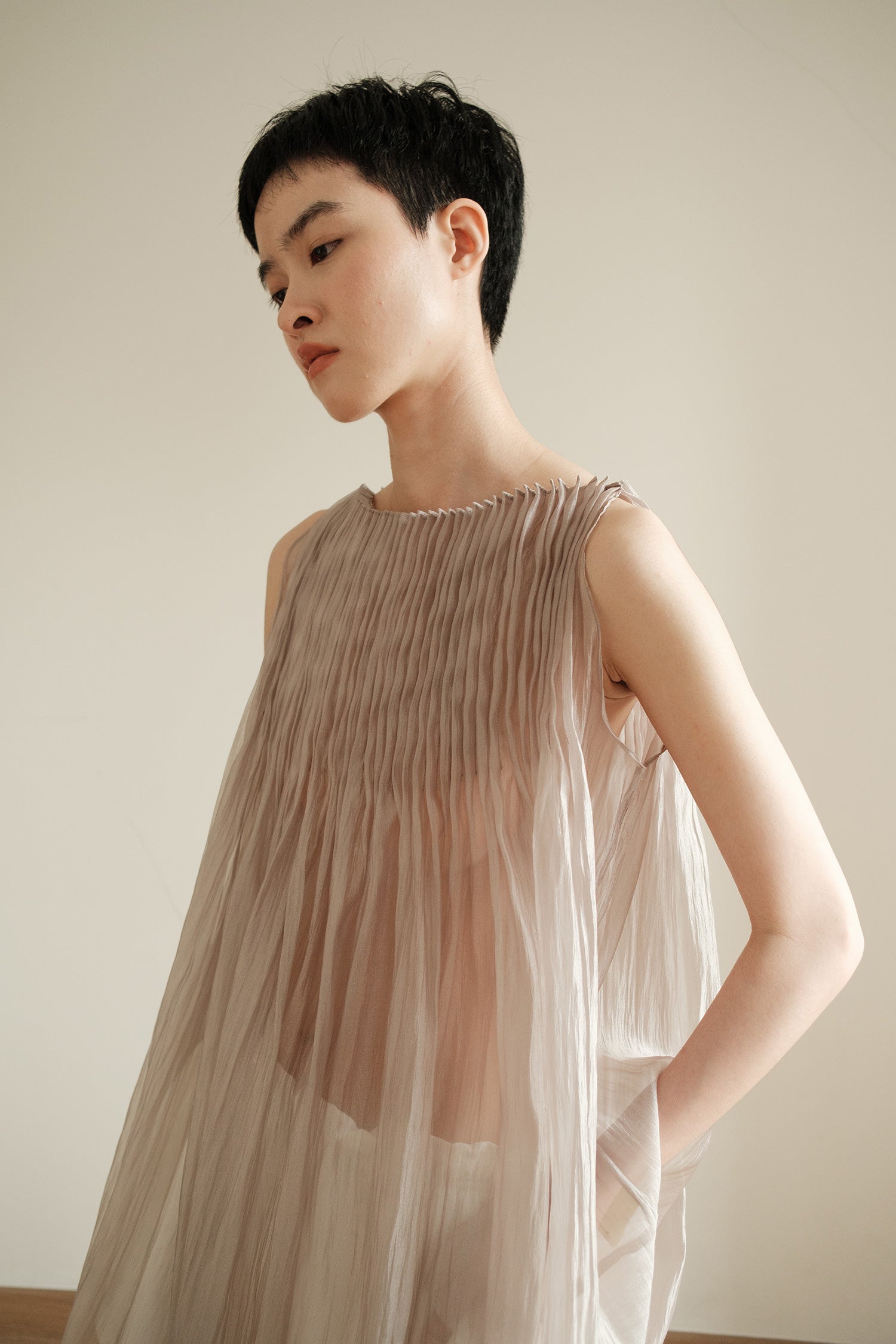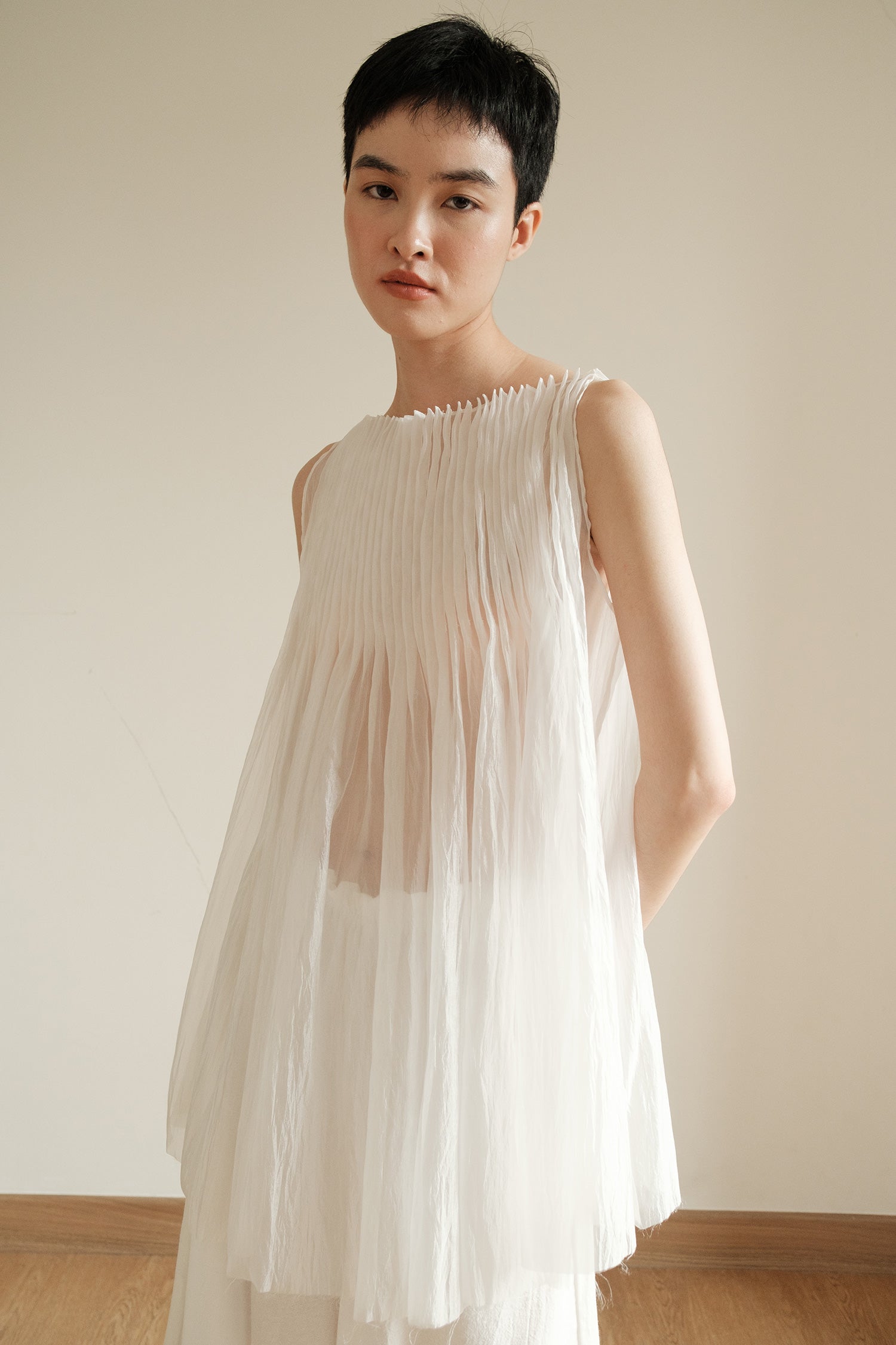 A-line shape panelled top with see through material. Vanny is a boated neck top with detailed stitching shoulder. Vanny has an unfinished bottom, and its a perfect pair for denaya dress: https://sayatales.com/products/saya-denaya-sheer-maxi-dress?_pos=1&_sid=b7e1a6467&_ss=r